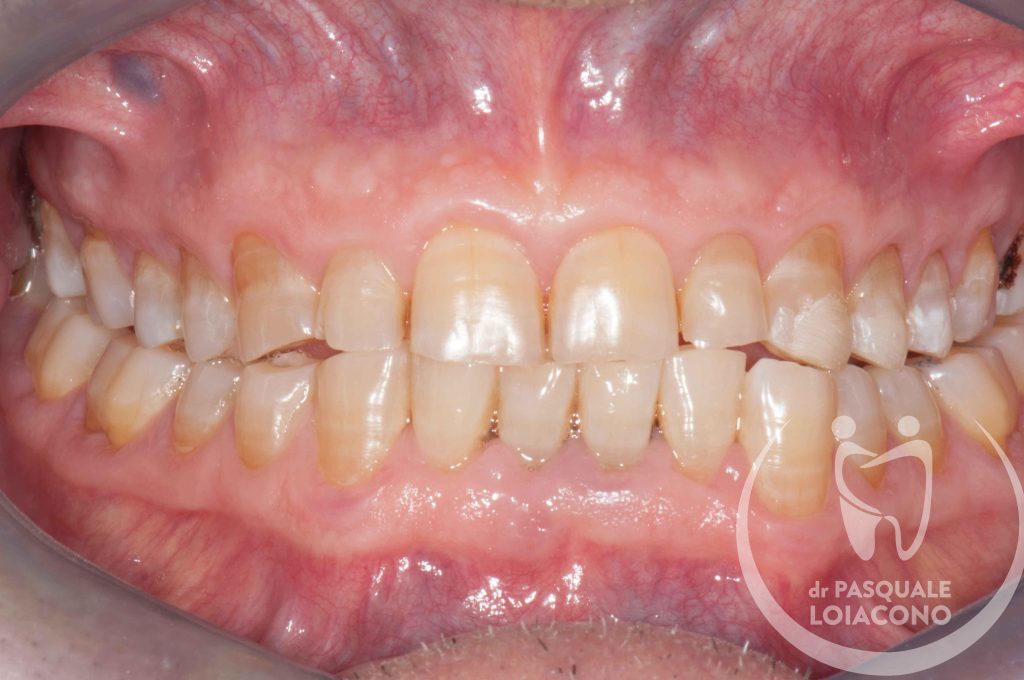 La stessa bocca dell’immagine precedente mostra però la non perfetta coincidenza delle liee mediane delle arcate dentarie, segno di un funzionamento asimmetrico