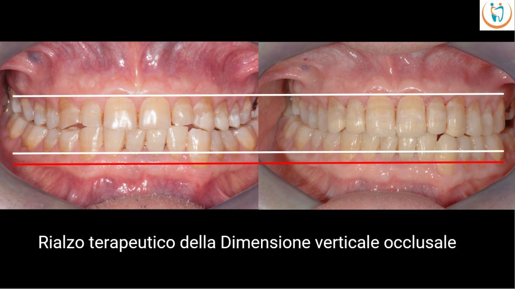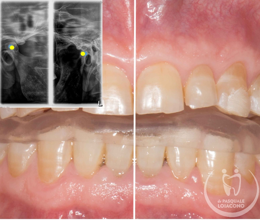 Per alleviare il dolore è stato costruito un apparecchio con chiusura in occlusione terapeutica, che riposiziona nello spazio correttamente la mandibola e le sue articolazioni. Ricentrando le linee mediane e rialzando la masticazione la posizione dell’articolazione si normalizza, poiché si è rispettata la fisiologia dell’organo.