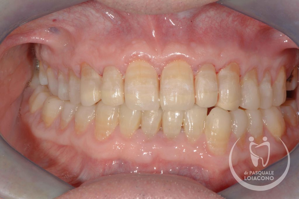 Un esempio di occlusione terapeutica ottenuta con la centratura della posizione mandibolare e il rialzo per compensare l’usura dentale. Questa terapia gnatologica ha permesso di risolvere i problemi
