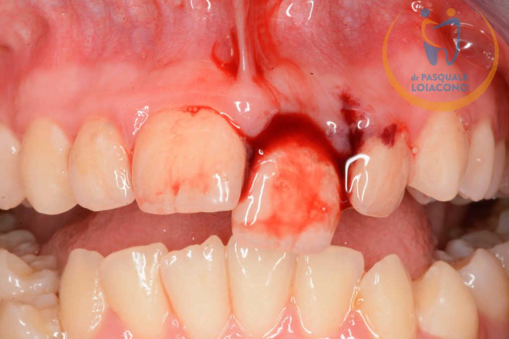 L’incisivo centrale quasi totalmente avulso dalla sua sede.