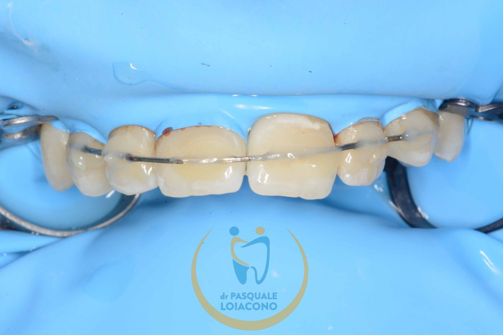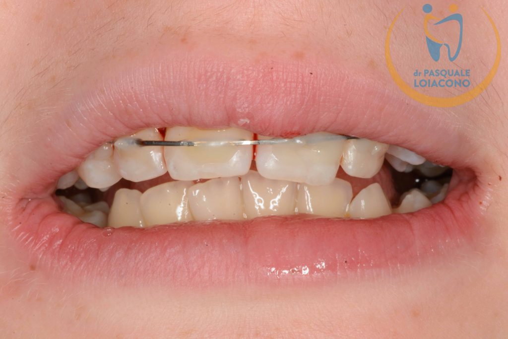 é fondamentale bloccare il dente solidarizzandolo ai denti vicini con un sezionale ortodontico incollato, per dare la possibilità ai processi riparativi di essere efficaci, questo per non più di due o tre settimane.