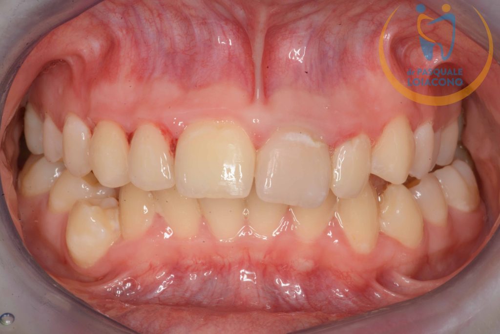 Il dente riposizionato perfettamente nella sua sede dopo anestesia.